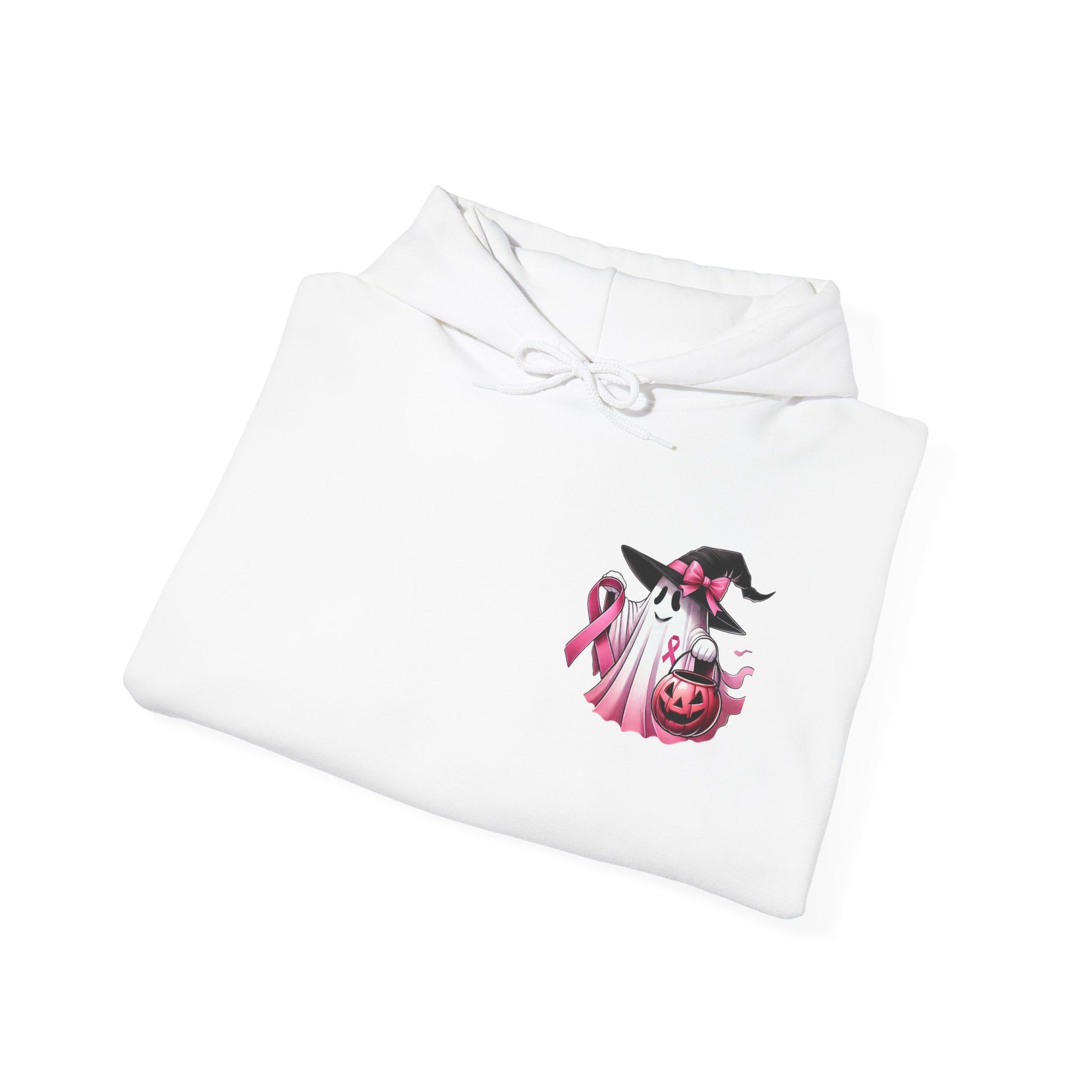 Stay cozy and stylish with this unisex heavy blend hooded sweatshirt. Perfect for chilly days, it features a spacious kangaroo pocket to keep your hands warm and an adjustable drawstring hood for a snug fit. This sweatshirt encapsulates a playful yet thoughtful vibe, making it ideal for those who enjoy expressing their unique personality through fashion. With its vibrant design featuring whimsical elements, it's also a great conversation starter. Perfect for casual outings, relaxing at home, or sharing with friends during Halloween festivities or Breast Cancer Awareness Month in October. This sweatshirt is perfect for anyone wanting to blend comfort with a touch of charm, making it a fantastic gift for loved ones who appreciate cozy apparel with a meaningful message.